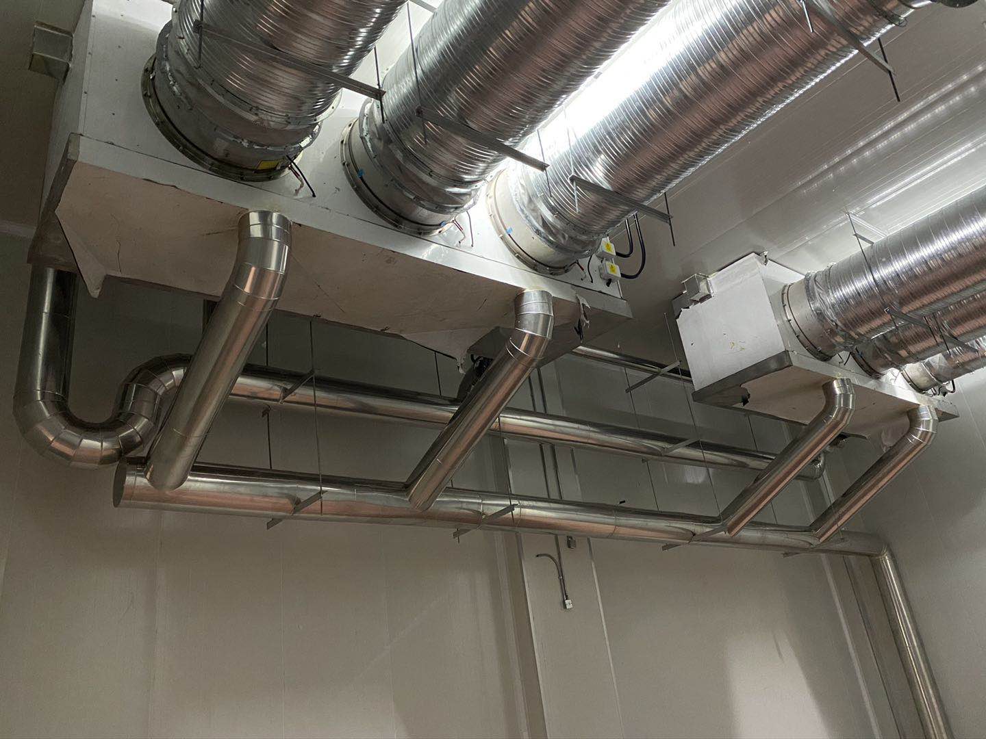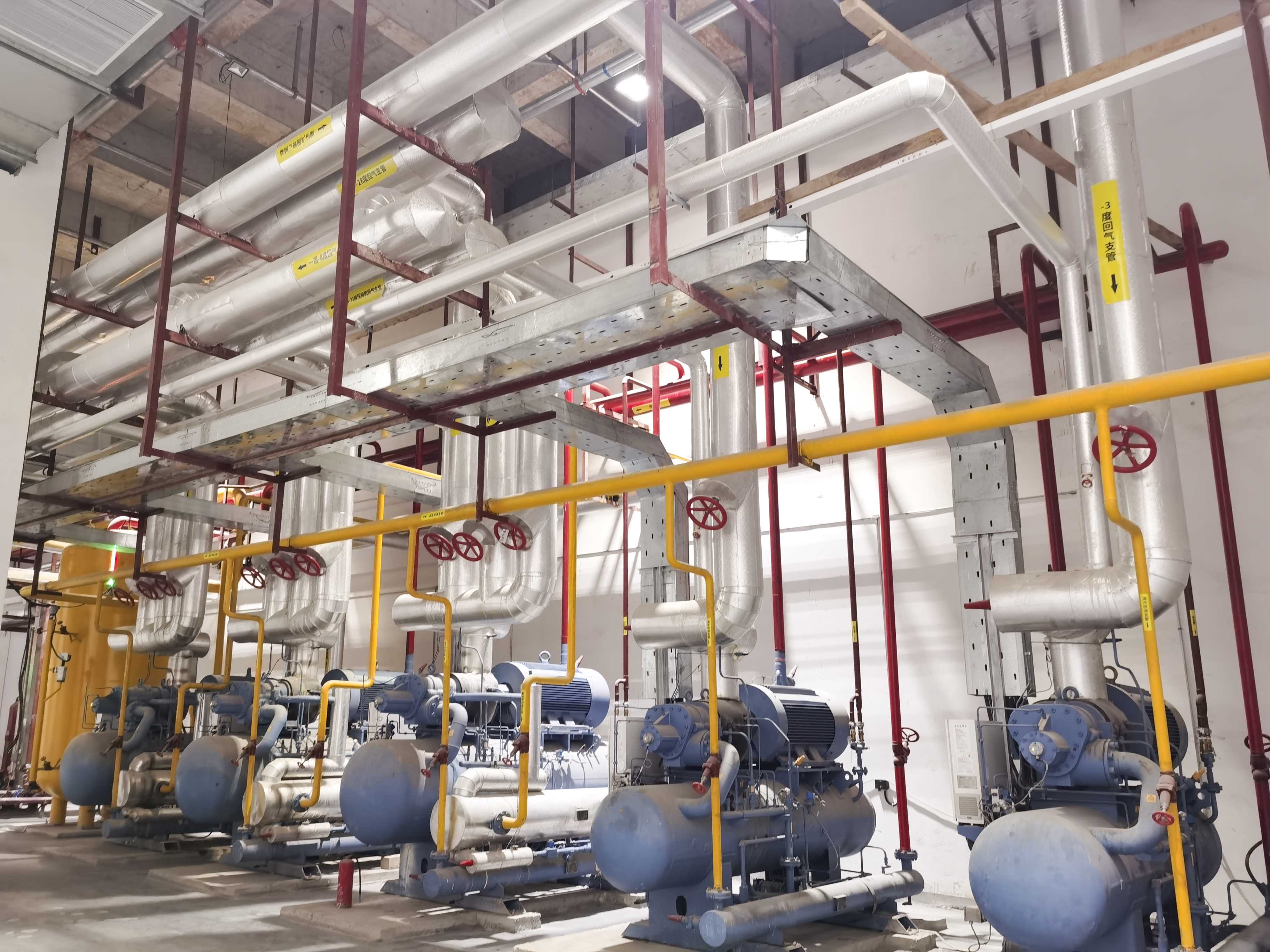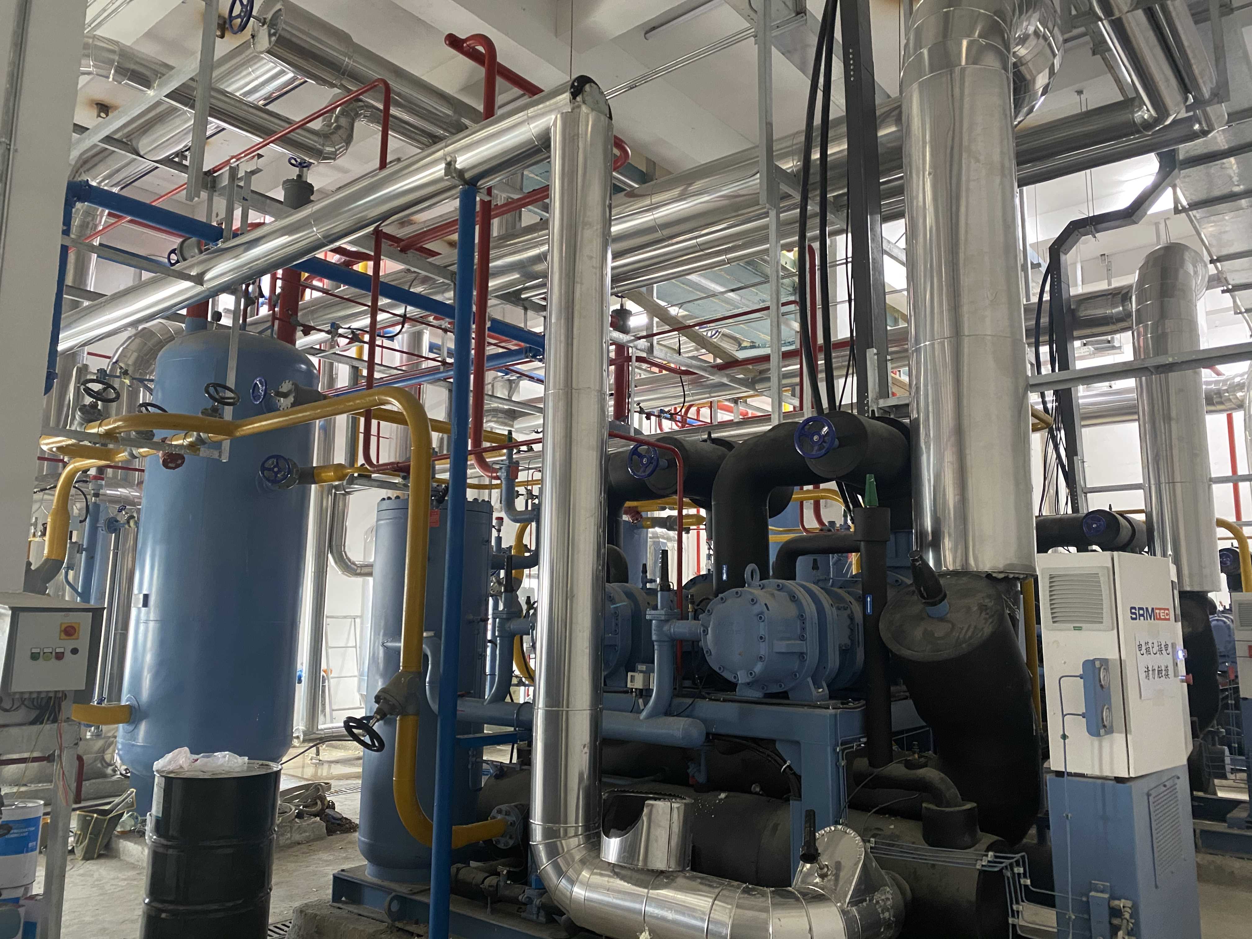 R507A泵供液系统 热气融霜,排管+冷风机,聚氨酯喷涂保温; 蒸发式冷凝器;
